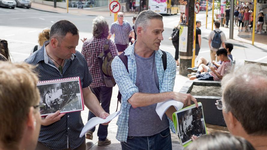 A serious moment .. describing the arson attack on the Lesbian and Gay Rights Resource Centre. Photo courtesy of Claire Henry