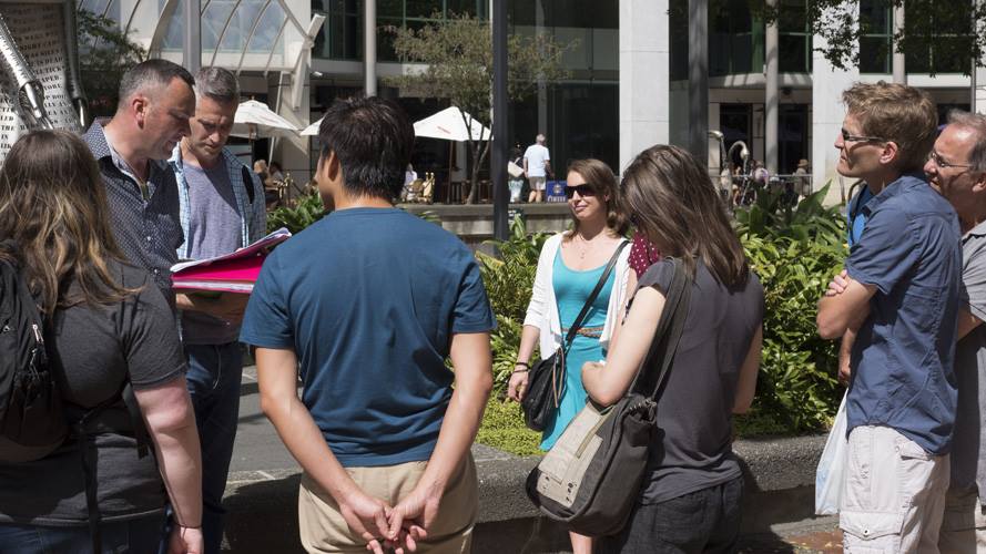 Posted on April 30, 2017April 30, 2017 by walktoursnz Next to the Katherine Mansfield sculpture in Midland Park. Photo courtesy of Claire Henry